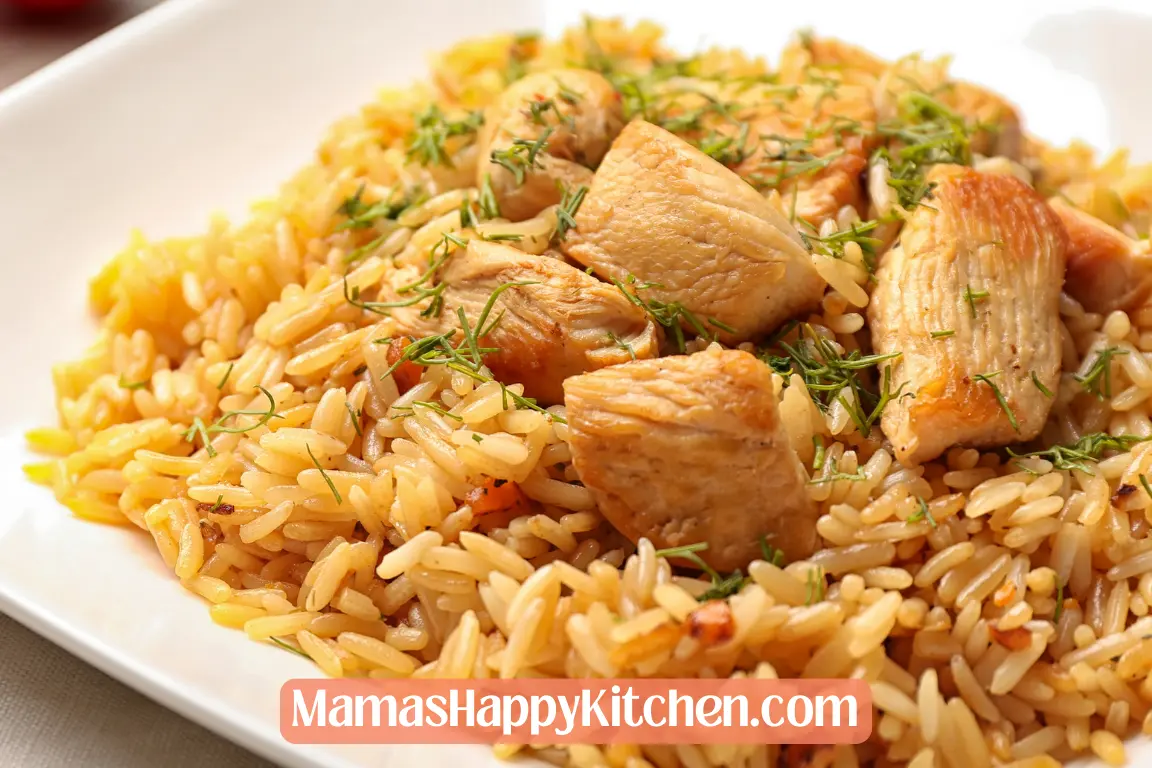 This pilaf is a wholesome choice due to its balanced ingredients. It combines lean protein, complex carbohydrates, and healthy fats, making it a nutritious meal option.