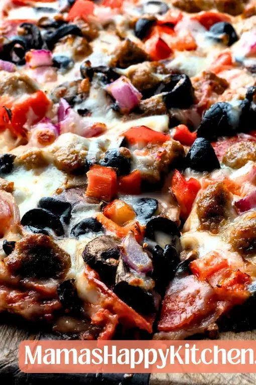 This pizza is best served warm, but the leftovers taste great too! Any leftovers can be stored in an airtight container for up to 4 days in the refrigerator. When you are ready to eat, either pop the pizza in the microwave, or air fryer or reheat it in the oven.